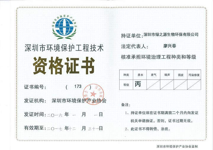 深圳市綠之源生物環(huán)保有限公司成立十余年,是經(jīng)深圳市環(huán)保局批準的具有專項環(huán)保工程設(shè)計資質(zhì)的企業(yè),深圳市高新技術(shù)企業(yè)。公司從創(chuàng)立初期的水處理藥劑、水處理設(shè)備的研發(fā),逐步成長為環(huán)保類綜合性服務(wù)的企業(yè),目前年營業(yè)額約三千萬,集水處理藥劑研發(fā),工業(yè)廢水、廢氣及農(nóng)村生活污水處理等環(huán)保工程的設(shè)計、安裝、調(diào)試、運營、技術(shù)咨詢一條龍服務(wù),為珠三角眾多企業(yè)服務(wù),解決相關(guān)環(huán)保難題,并取得了良好的社會效益和環(huán)境效益。